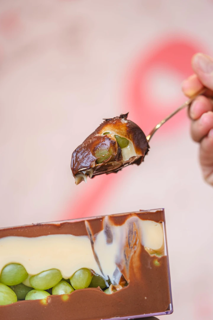 Creme de Ninho com chocolate, uvas frescas e cobertura cremosa. Sabor delicado e irresistível.