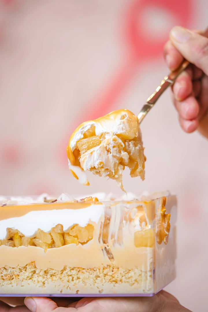 Camadas de banana fresca, doce de leite cremoso e farofa crocante, finalizado com chantilly. Clássica, delicada e irresistível.