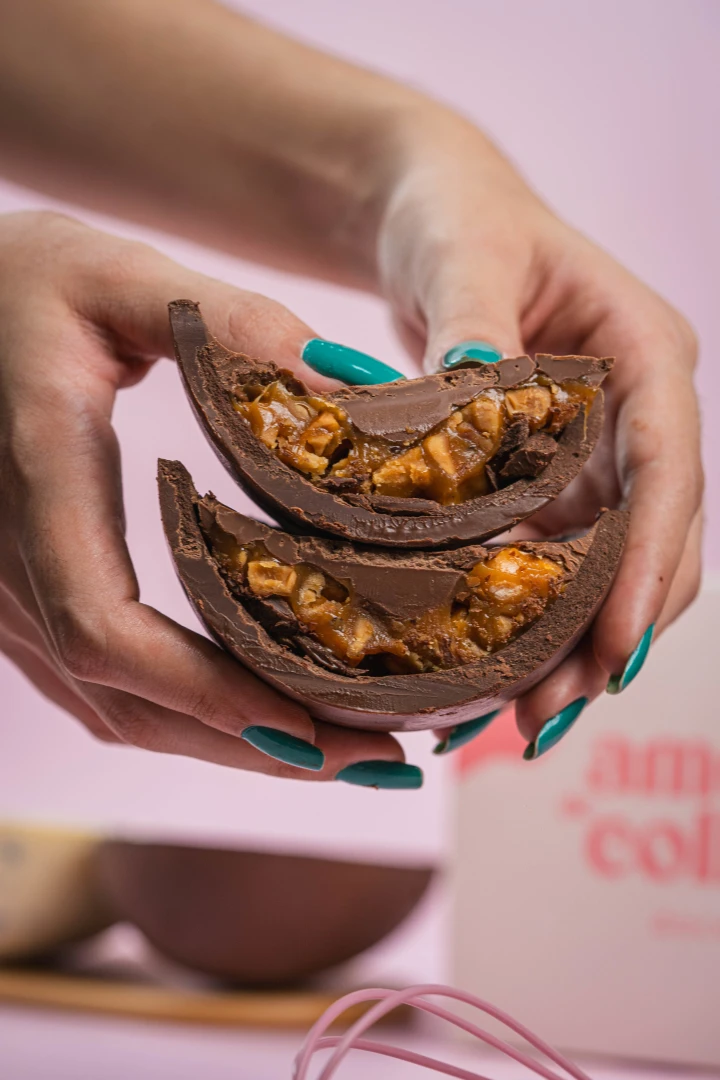 Delicioso ovo com casca de chocolate, recheado com um creme trufado super cremoso de castanha-do-pará, trazendo um sabor marcante e irresistível. Finalizado com pedaços de castanha-do-pará, que dão um toque crocante e especial a cada colherada.