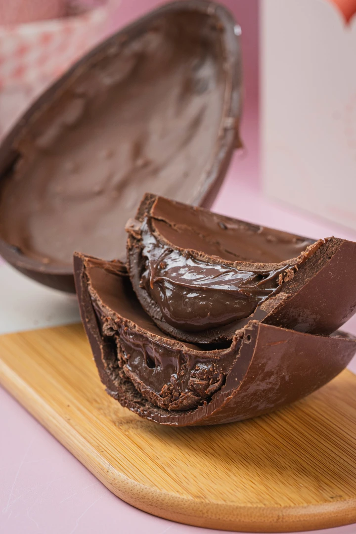 Delicioso ovo com casca de chocolate, recheado com um creme super cremoso de leite Ninho e uma generosa camada de Nutella, criando a combinação perfeita entre suavidade e intensidade de chocolate.