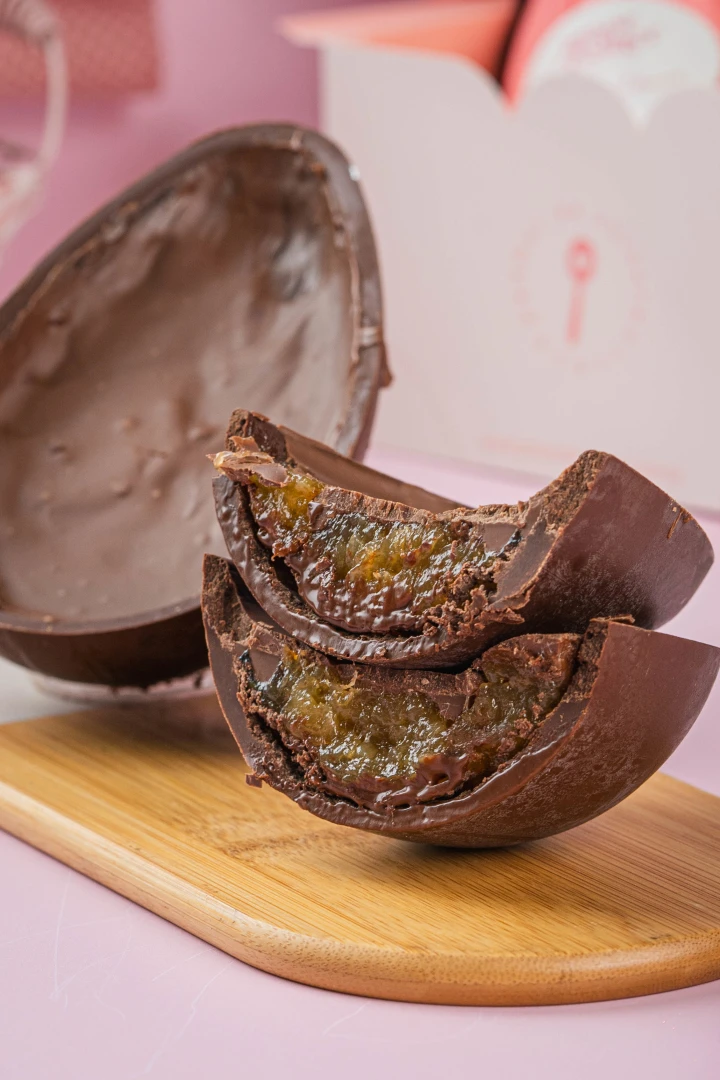 Delicioso ovo com casca de chocolate, recheado com creme super cremoso e geleia de cupuaçu, trazendo o autêntico sabor amazônico, levemente azedinho e marcante.