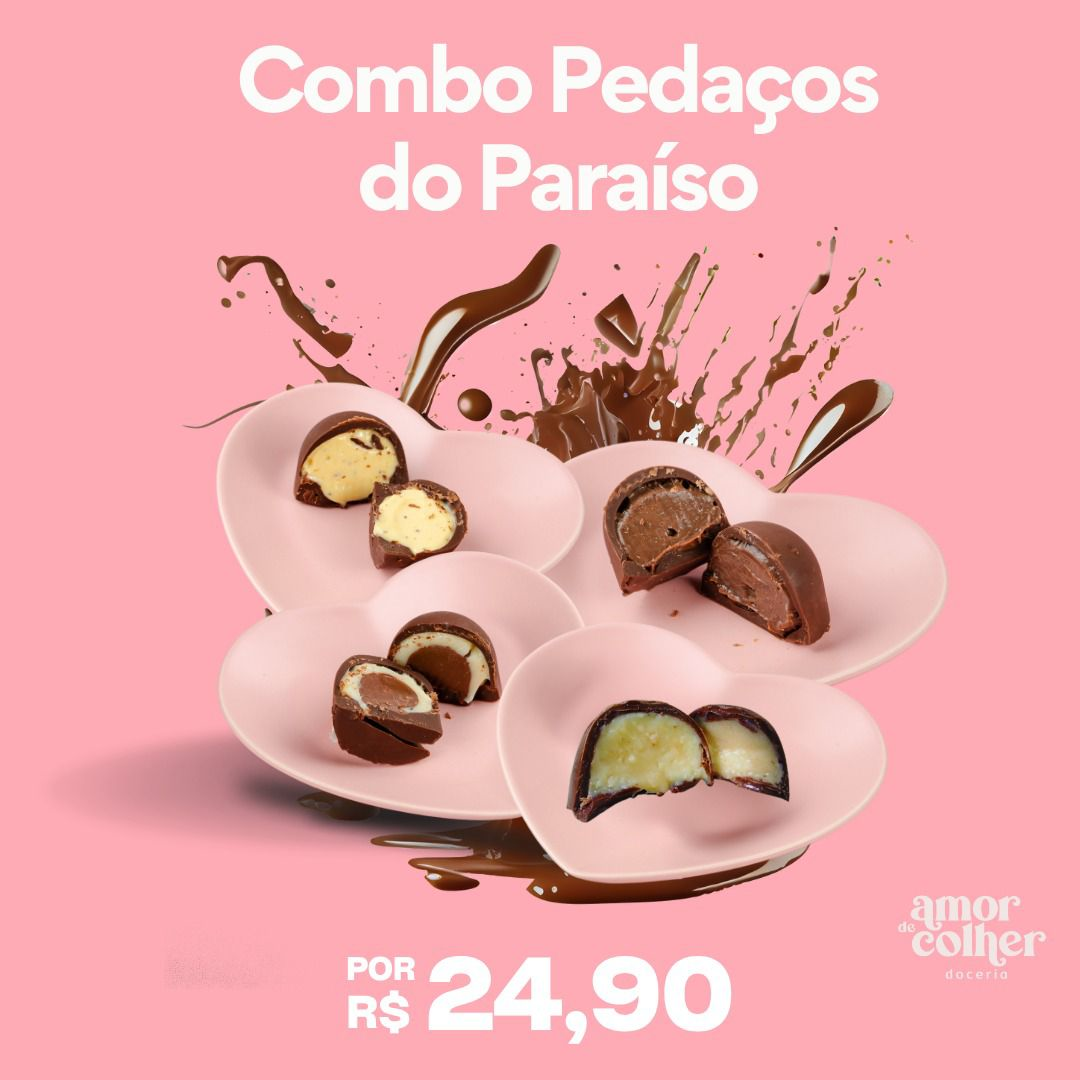 Prepare-se para adoçar o dia com o combo mais delicioso da Amor de Colher! Leve 4 trufas irresistíveis: Ninho com Nutella, Brigadeiro, Beijinho e Maracujá. Um mix perfeito de sabores que vai conquistar você em cada mordida. Não perca!